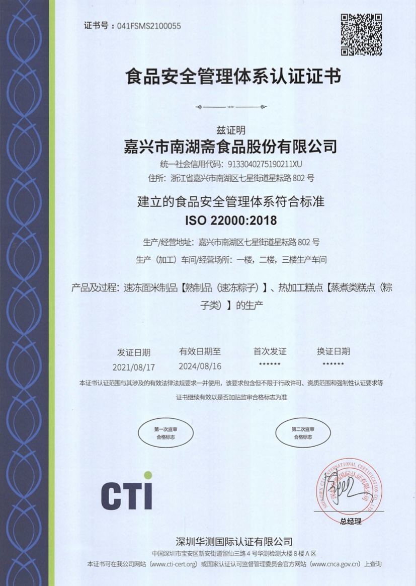 嘉興市南湖齋食品股份有限公司成立于1997年,誕生于馬家浜稻作文化的發(fā)源地----浙江嘉興,南湖齋自創(chuàng)立以來,始終堅(jiān)持品質(zhì)為先的原則,精選每一種食材,特別是在糯米保鮮上更是嚴(yán)格要求,并在每一道制作工藝上都是精益求精。同時(shí),在傳統(tǒng)嘉興粽的基礎(chǔ)上,針對(duì)現(xiàn)代人更加注重健康和好吃的需求,先后改良和研發(fā)了鮑汁蛋黃鮮肉粽、五花肉粽、梅干菜鮮肉粽、紅燒排骨粽、南湖菱粽、紫糯八寶粽、南乳粽、火腿蠶豆粽等代表性產(chǎn)品,廣受好評(píng)。