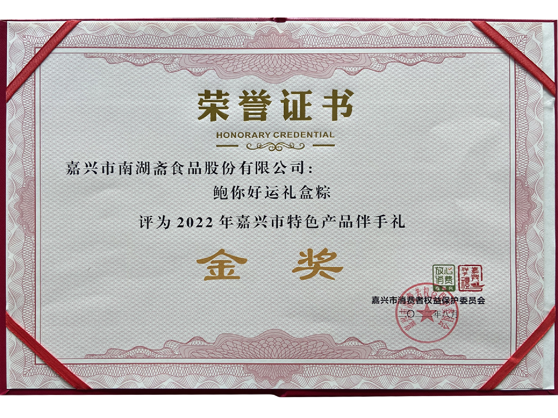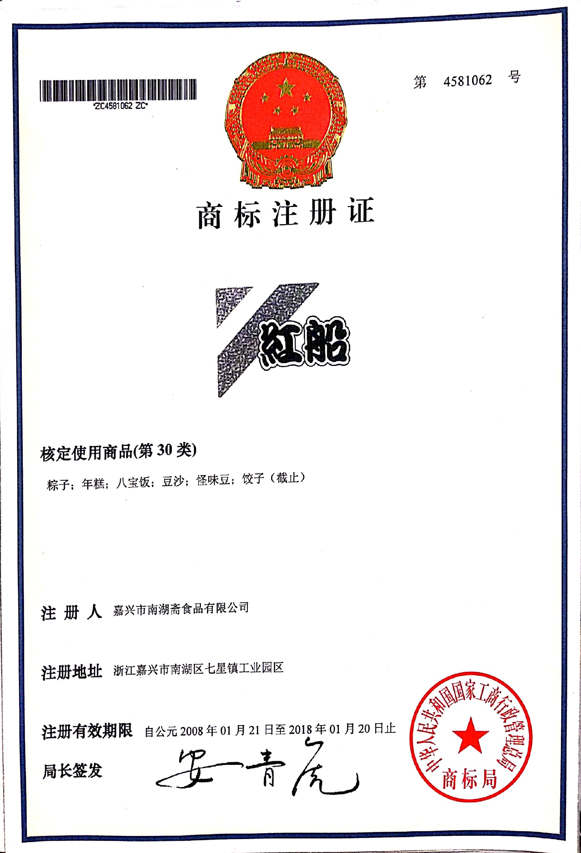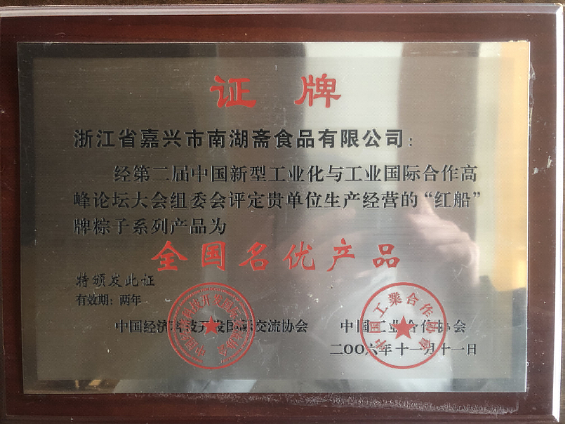 2005年粽子產(chǎn)量突破1000萬只,南湖齋旗下“紅船”品牌被評(píng)為嘉興市著名商標(biāo)。
